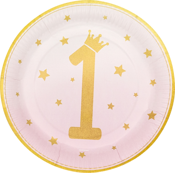 Assiette 1 an Rose – Etoiles or – Lot de 8