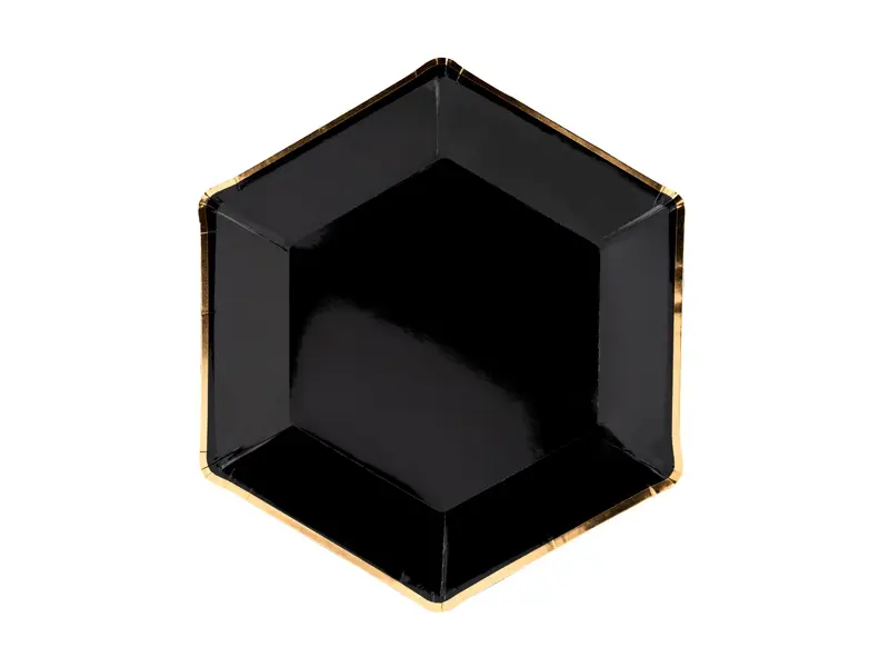 Assiette hexagonale – Noir/Or – Lot de 6