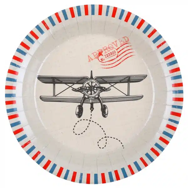 Assiette thème voyage en carton, vendu par lot de 10 assiettes.