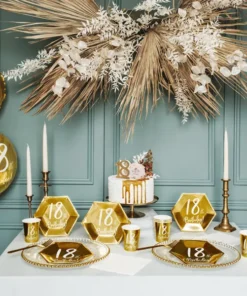 Ballon aluminium métallisé, rond, doré avec inscription blanche « 18th Birthday ! »