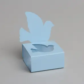 Lot de 6 boites bleu ciel avec une colombe ! Assortissez vos boites à dragées communion à votre décoration de table communion.