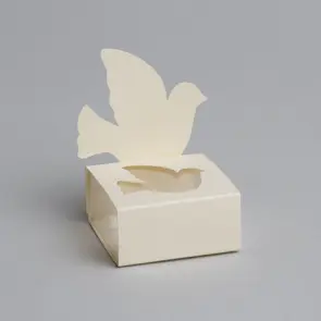 Lot de 6 boites ivoire avec une colombe ! Assortissez vos boites à dragées communion à votre décoration de table communion.