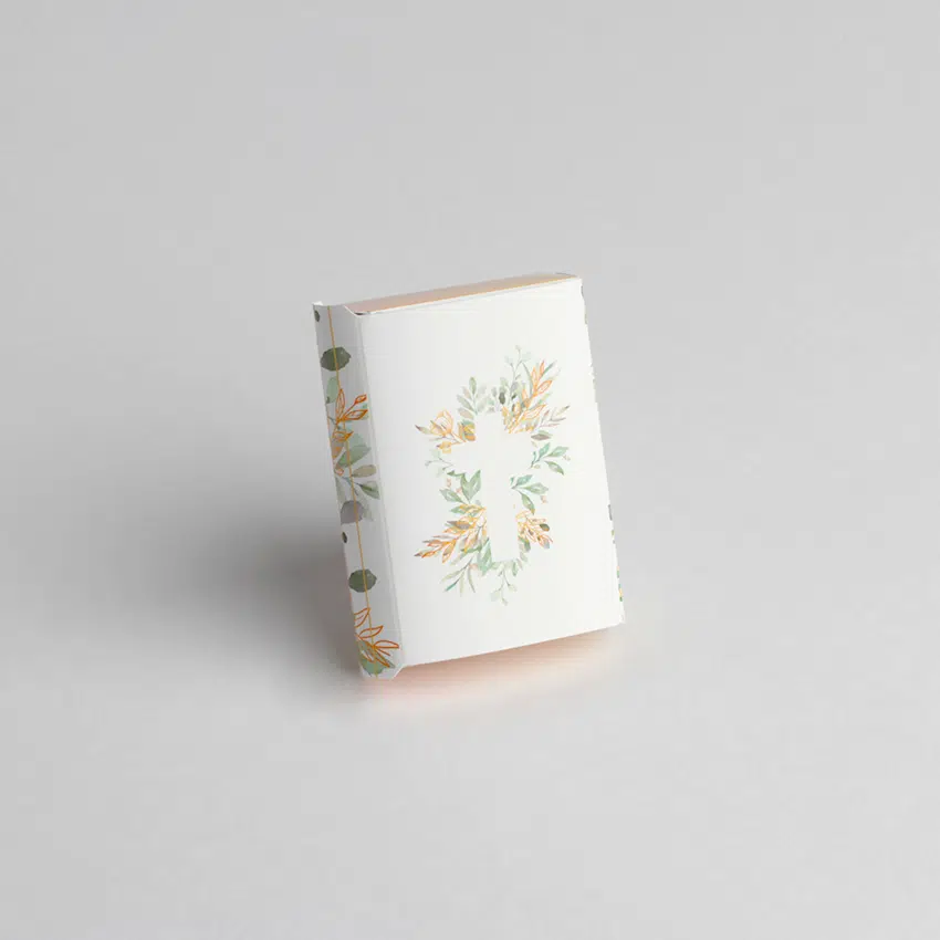 Boite à dragées Communion – Missel – Feuillage avec Croix – Lot de 10