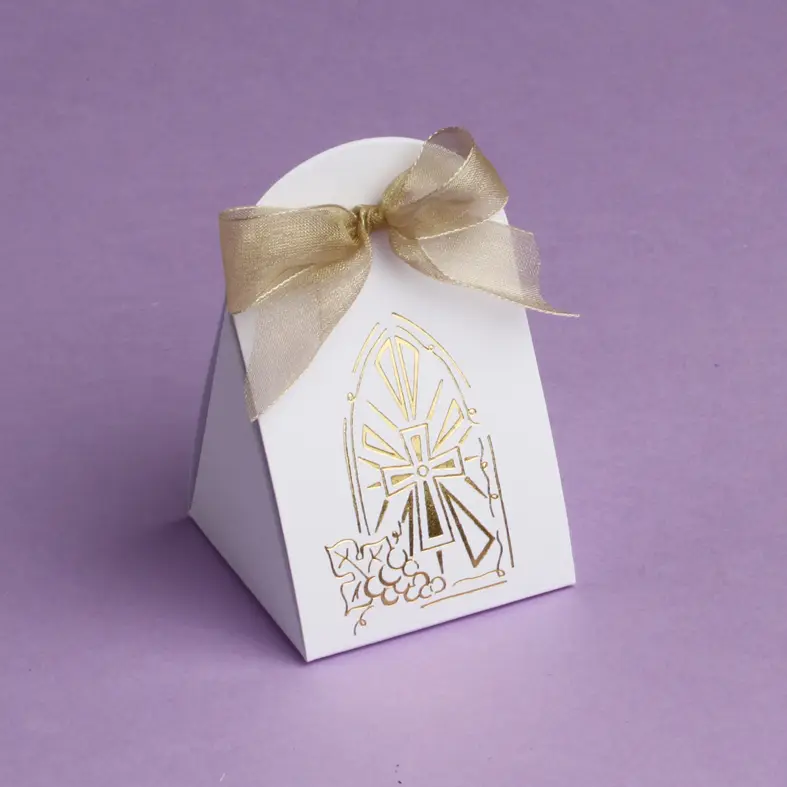 Boite à dragées communion – Pochon motif vitrail or – Lot de 10