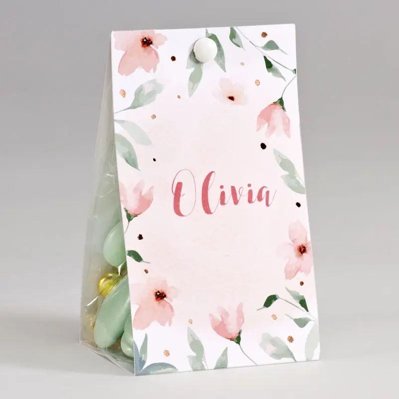 Boite à dragées fleuri avec motif dorure rose gold. Remplissez cette boîte à dragées avec nos délicieuses dragées puis offrez-les sans modération ! Personnalisez les avec le(s) prénom(s) et la date de l’événement et vos invités seront charmés.