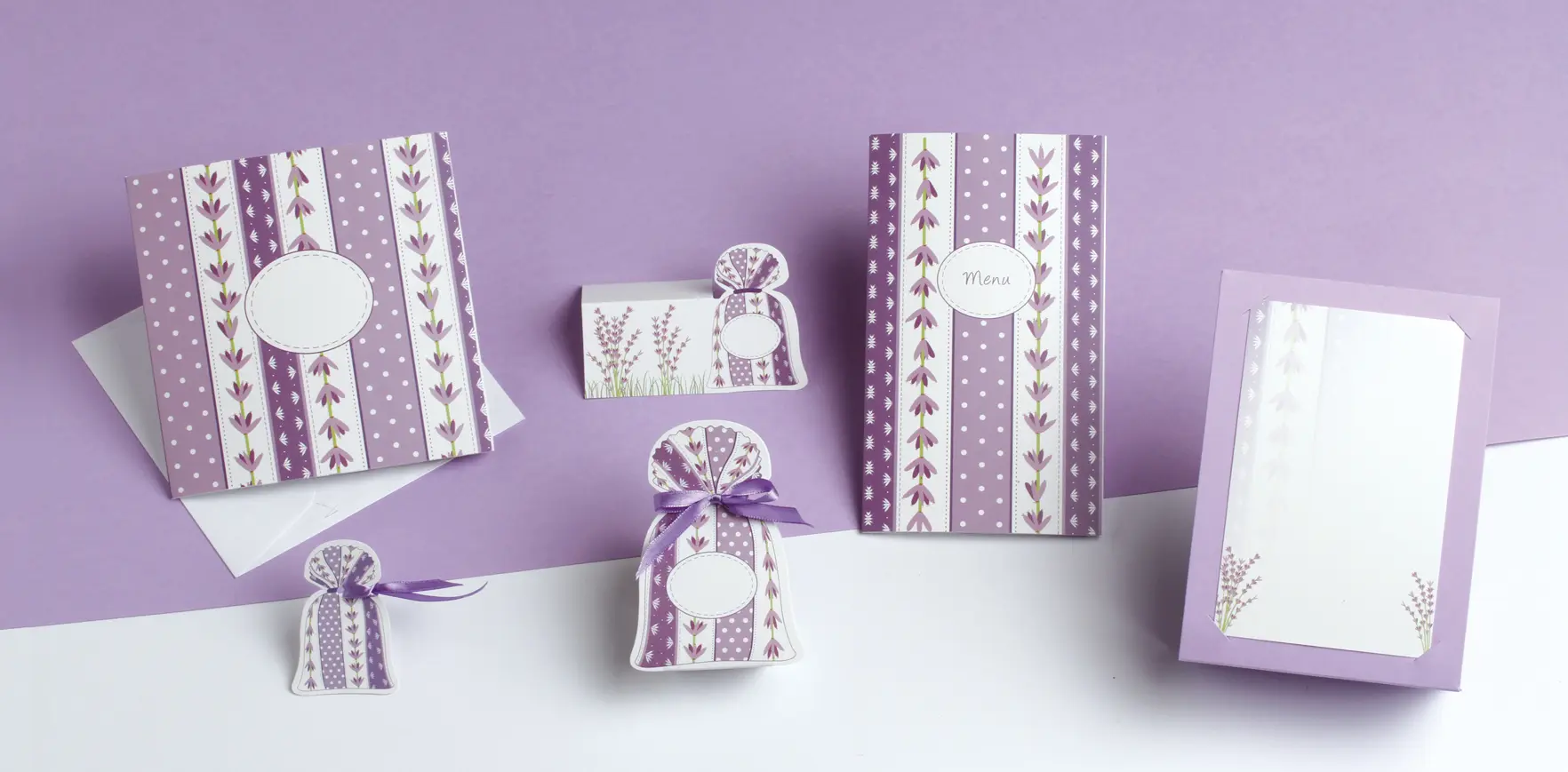 Jolie boite à dragées lavande sur le thème de la Provence. Lot de 10 boites.