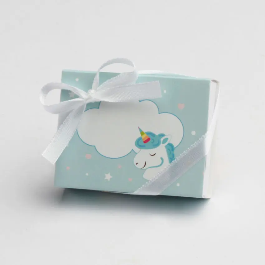 Boite à dragées Licorne Bleu ciel – Fourreau – Lot de 10