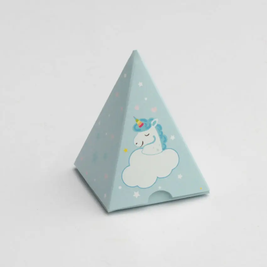 Boite à dragées Licorne Bleu ciel – Mini pyramide – Lot de 10