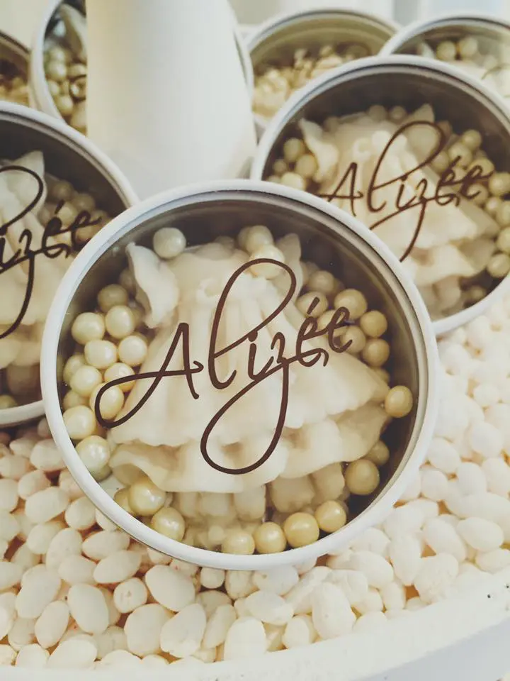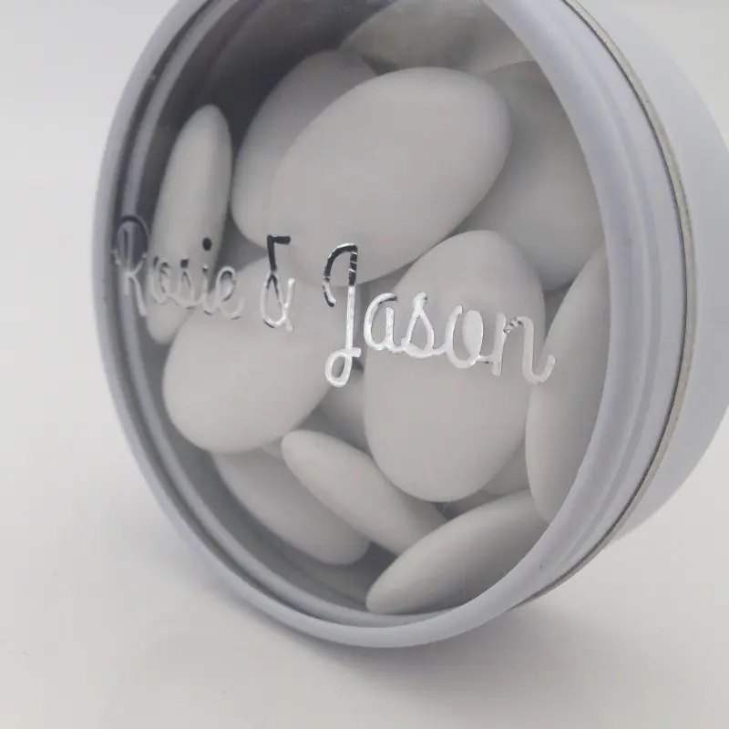Vous pouvez agrémenter ce contenant à dragées avec nos Stickers prénom pour un effet sobre et élégant.