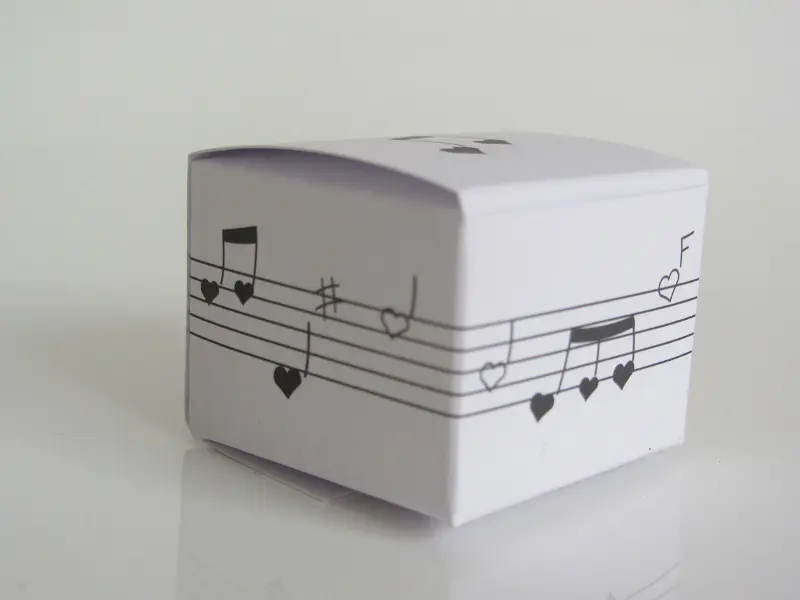 Contenant à dragées original sur le thème de la musique. Vendu pat lot de 10 boites.
