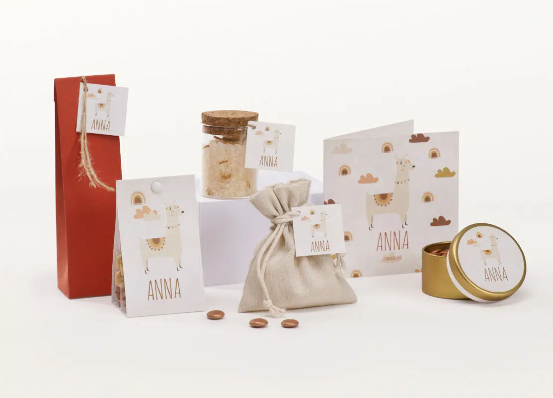 Boite à dragées Nude Lama. Remplissez cette boîte à dragées avec nos délicieuses dragées puis offrez-les sans modération ! Personnalisez les avec prénom(s) et date, vos invités seront charmés.