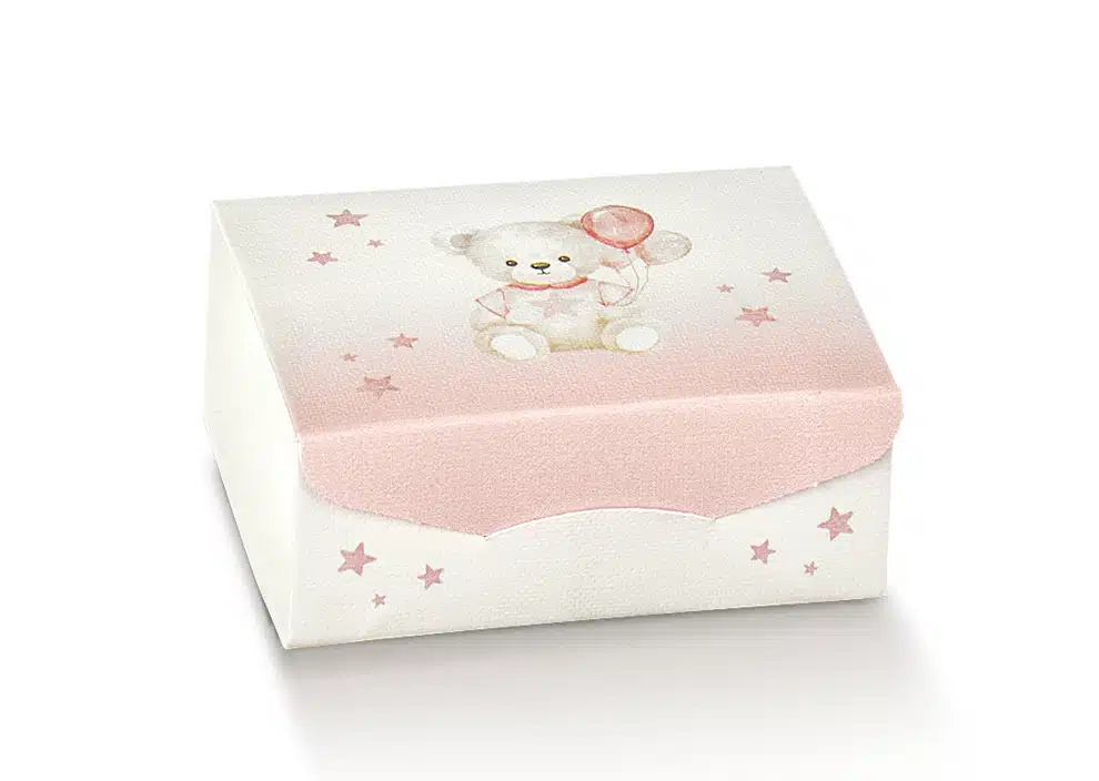 Boîte à dragées rectangle – Motif Ourson, Ballons et Étoiles