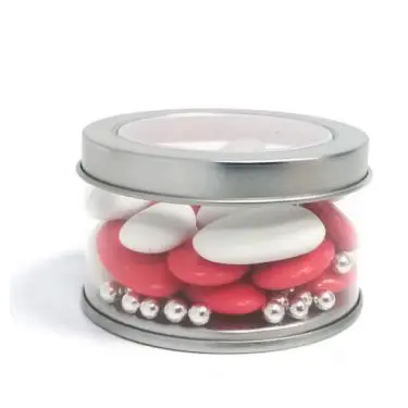 Boite à dragées ronde en métal avec fenêtre pvc