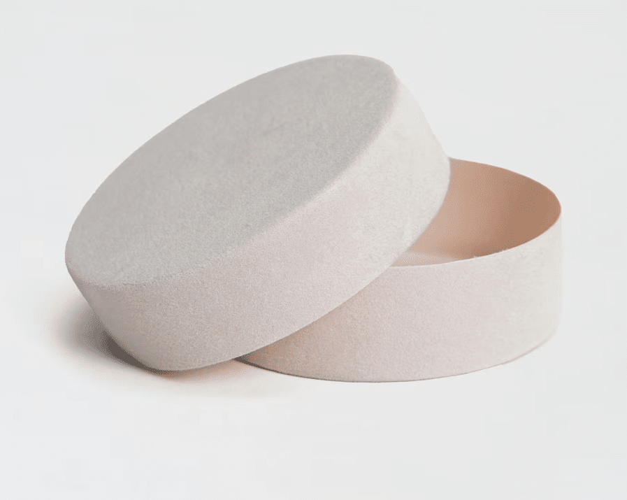 Cette jolie boîte à dragées ronde recouverte d’un doux velours sable apportera une touche de raffinement à votre décoration de table. Fabriquée en plastique souple avec un effet velours très élégant, elle offre un rendu chic et moderne, idéal pour un mariage ou une cérémonie raffinée.
