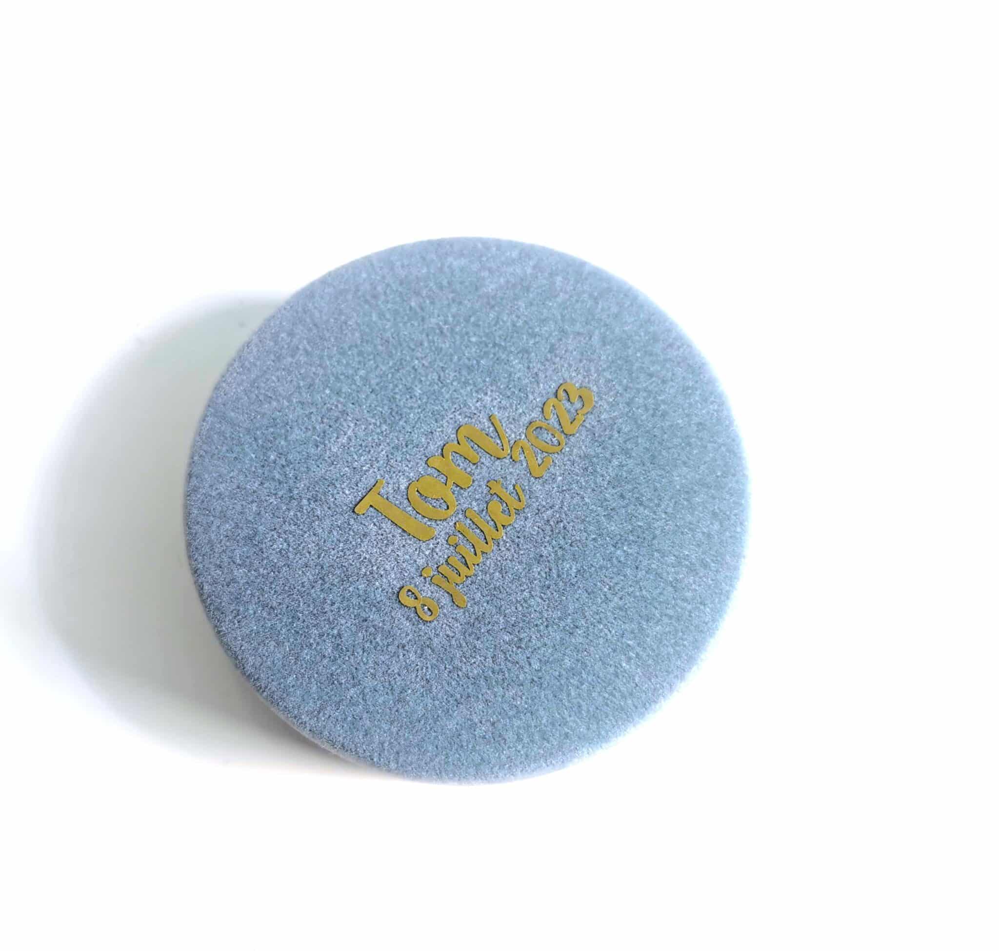 Cette jolie boîte à dragées ronde recouverte d’un doux velours apportera une touche de raffinement à votre décoration de table. Fabriquée en plastique souple avec un effet velours très élégant, elle offre un rendu chic et moderne, idéal pour un mariage ou une cérémonie raffinée.