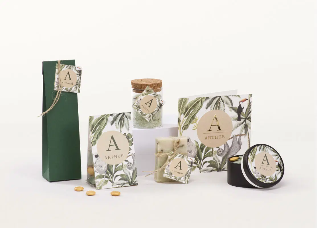 Boite à dragées Tropicale. Remplissez cette boîte à dragées avec nos délicieuses dragées puis offrez-les sans modération ! Personnalisez les avec prénom(s) et date, vos invités seront charmés.