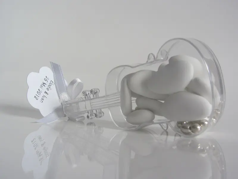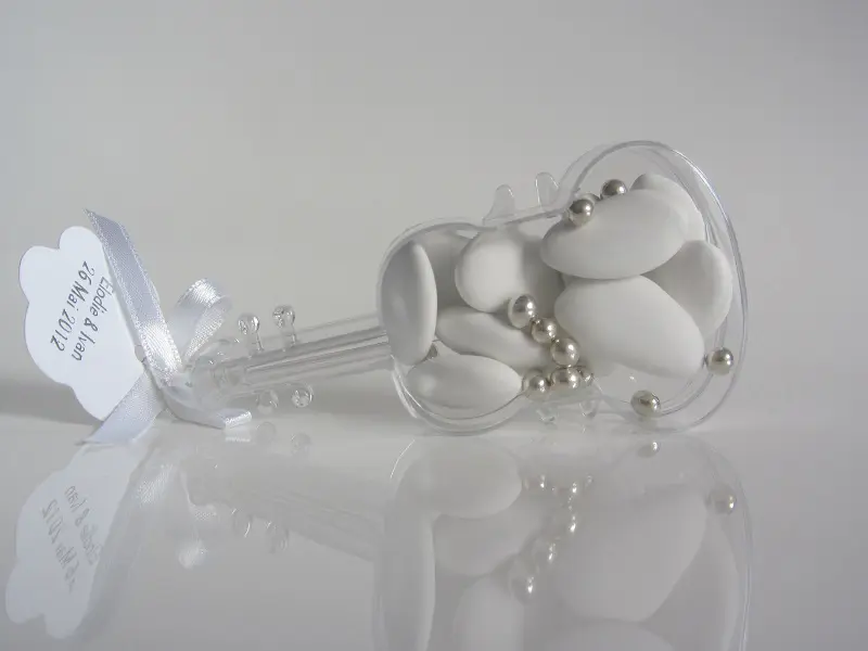 Un contenant à dragées en forme de violon indispensable pour un thème musique.