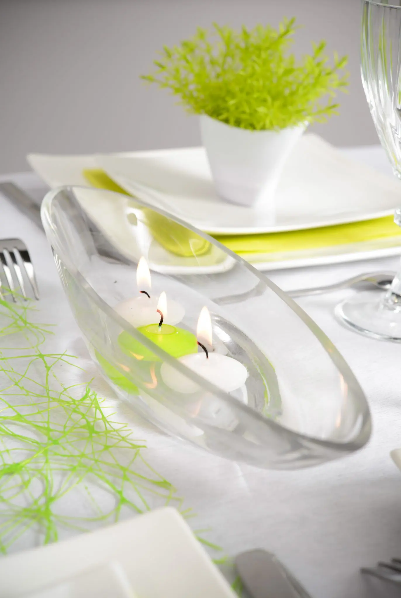 La bougie flottante est un élément incontournable de la déco de table. Placez vos bougies dans des vases avec de l’eau afin de créer une ambiance chaleureuse.