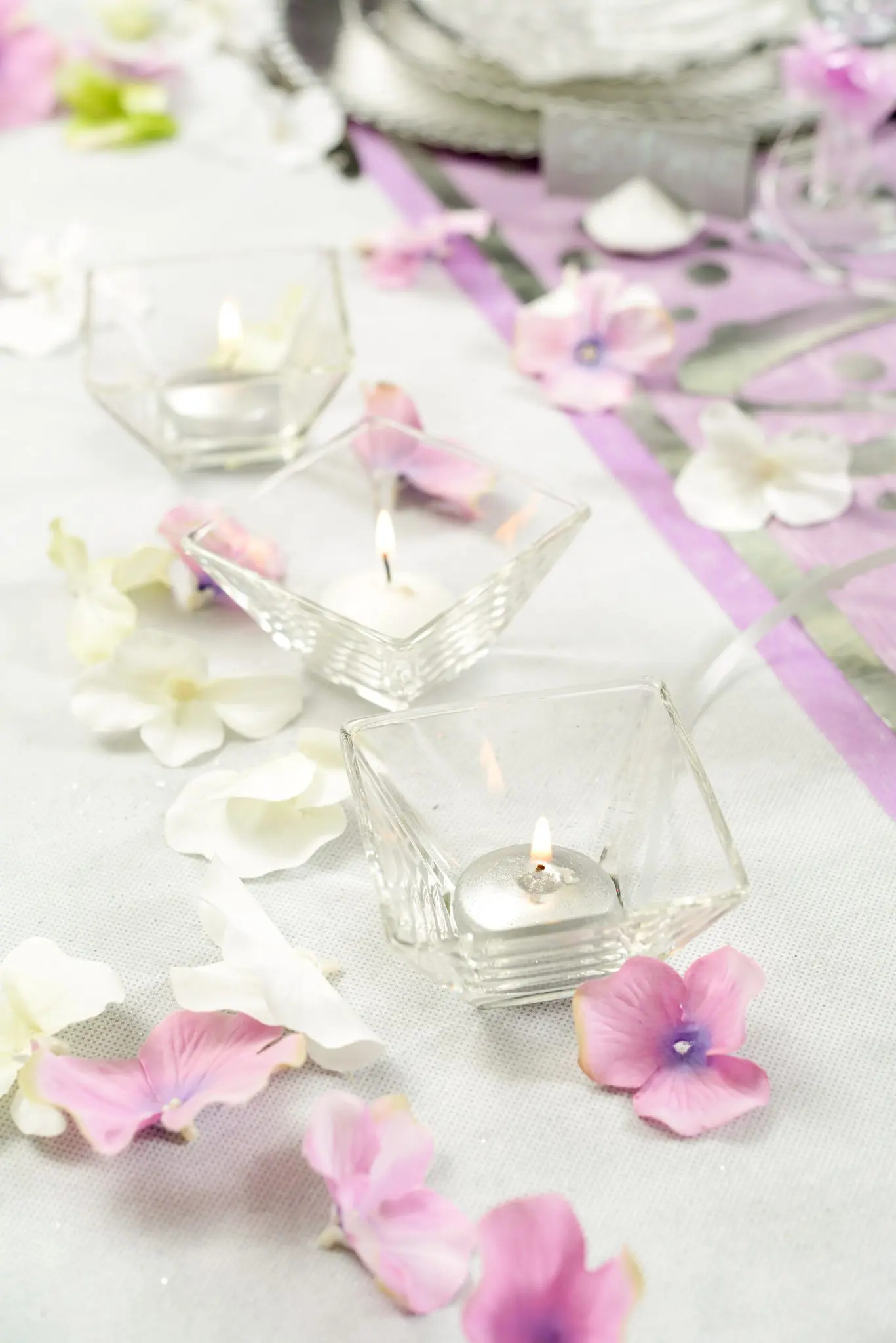 Lot de 50 Bougies flottantes à petit prix. Existe en différentes couleurs : rose, blanc, vert, rouge, violet, ivoire. Mettez ces jolies bougies flottantes dans des vases remplies d’eau et créez ainsi une réception chaleureuse à votre réception.