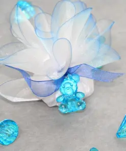 La Boule métallique à dragées n’est pas compris dans le prix mais elle fera un superbe contenant à assortir à votre pendentif ourson turquoise. Cela fera un contenant à dragées de baptême original ! La boule en métal de diamètre 5-6 cm (selon arrivage) et le pendentif ourson turquoise seront s’adapter facilement à votre décoration de baptême. Vous devrez à l’aide d’un ruban accrocher le petit ourson à la boule métallique autour d’un fil métallisé. Si vous optez pour l’associer çà une boule métallique suivez les conseils ci dessous: