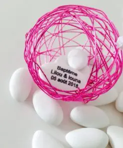 - Vous pouvez aussi ajouter une étiquette à dragées pour personnaliser votre contenant à dragées.