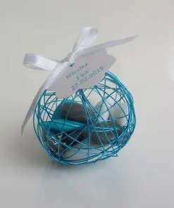 Très élégant, cette jolie boule métallique turquoise, garni de dragées, sera le cadeau idéal à offrir à vos invités lors de votre réception de mariage, de baptême ou de communion… Placez la boule de dragées près de chaque assiette, cela sera du plus bel effet pour une décoration de mariage, décoration de baptême, ou de décoration de communion.