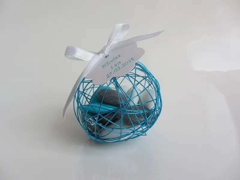 Très élégant, cette jolie boule métallique turquoise, garni de dragées, sera le cadeau idéal à offrir à vos invités lors de votre réception de mariage, de baptême ou de communion… Placez la boule de dragées près de chaque assiette, cela sera du plus bel effet pour une décoration de mariage, décoration de baptême, ou de décoration de communion.