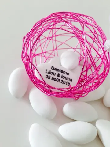- Vous pouvez aussi ajouter une étiquette à dragées pour personnaliser votre contenant à dragées.
