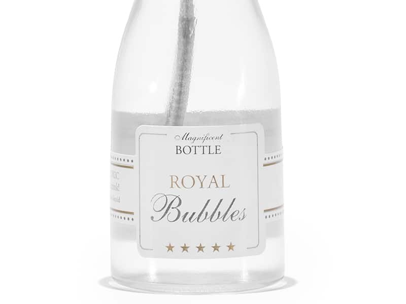 Ces mini-bouteilles imitant une bouteille de champagne sont remplies de liquide à bulles et feront passer un moment inoubliable dans une ambiance festive et romantique à vos invités! Les bulles pourront être soufflées à la sortie de votre cérémonie de mariage et enchanteront autant les adultes que les enfants. Les mini-bouteilles de bulles de savon peuvent également décorer vos tables ou être utilisés pour un anniversaire .