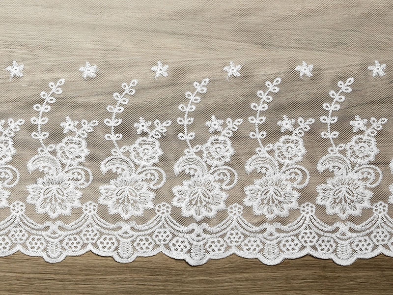 Luxueux chemin de table blanc cassé en dentelle avec impression de fleurs. Tissu très fin et très souple, une vrai Une décoration pour sublimer votre table lors d’une cérémonie.