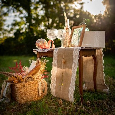 Ce joli chemin de table en toile de jute et bodée de dentelle est idéal pour décorer votre table dans le thème champêtre, vintage ….