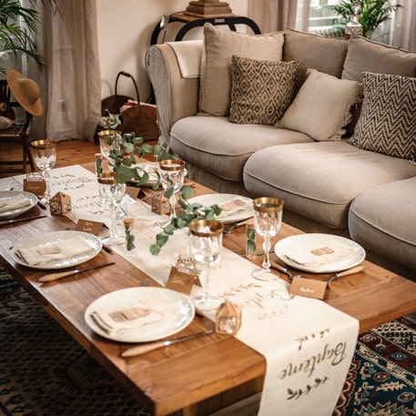 Très beau chemin de table en lin avec impression « Baptême » Or . Idéal pour une présentation de table élégante et raffinée !