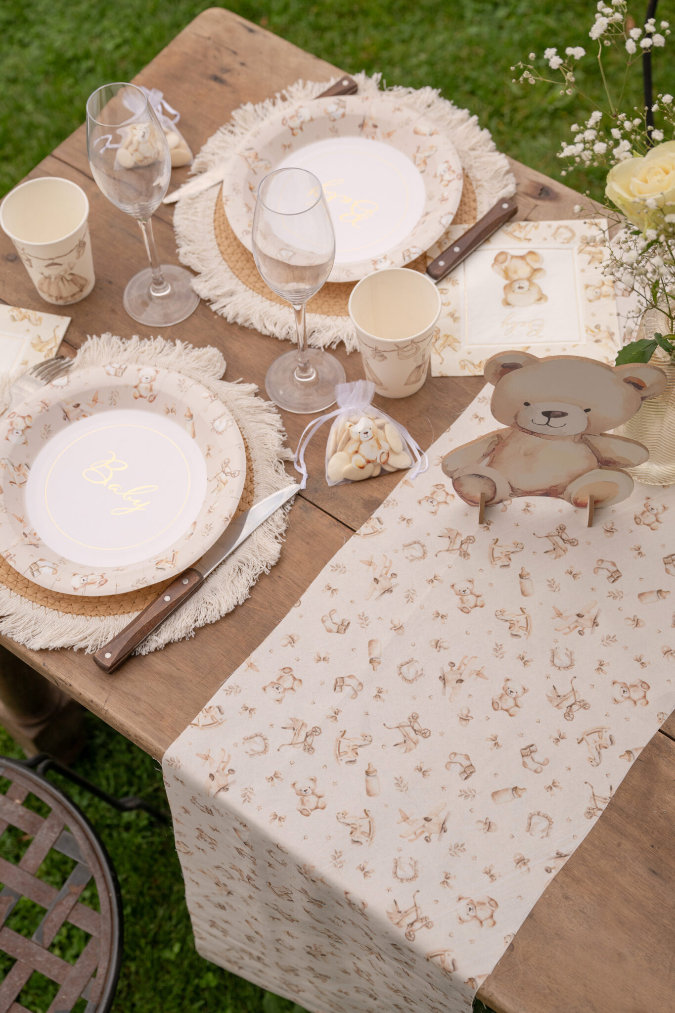 Facile à associer avec la vaisselle et les accessoires de la collection Little Teddy, ce chemin de table permet de créer une table harmonieuse et raffinée pour un baptême, une baby shower ou un anniversaire d’enfant, tout en apportant une touche décorative pleine de douceur.