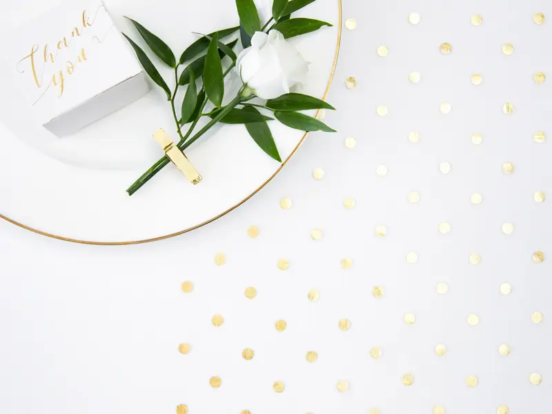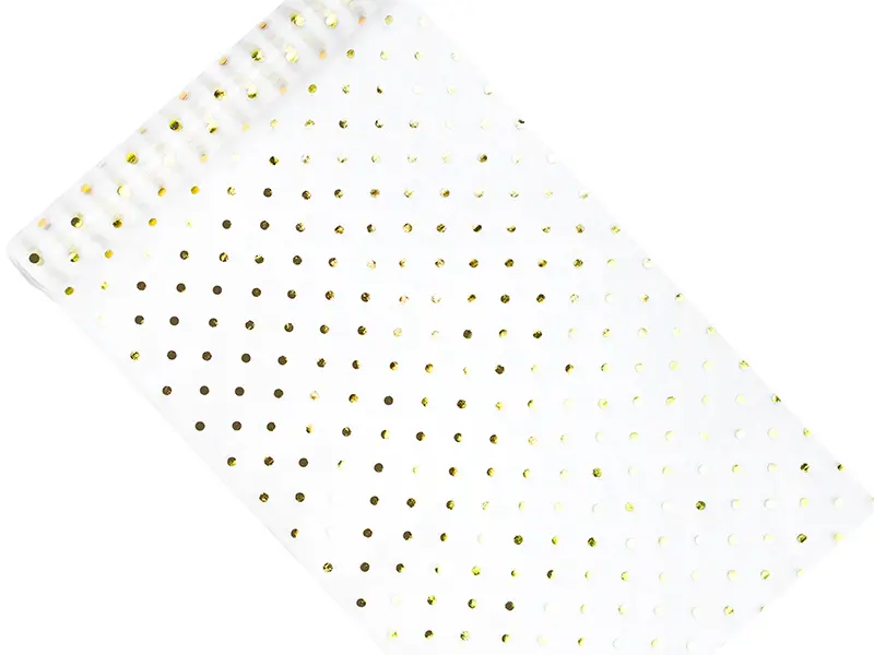 Très beau chemin de table en organza blanc avec impression de pois dorés sur une face et de pois argentés sur l’autre face, idéale pour une présentation de table élégante et festive!