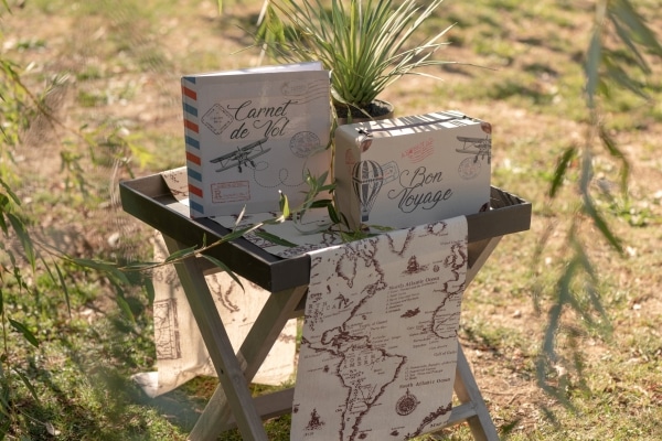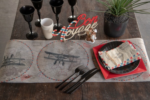 Chemin de table thème voyage en tissu non tissé polyester.