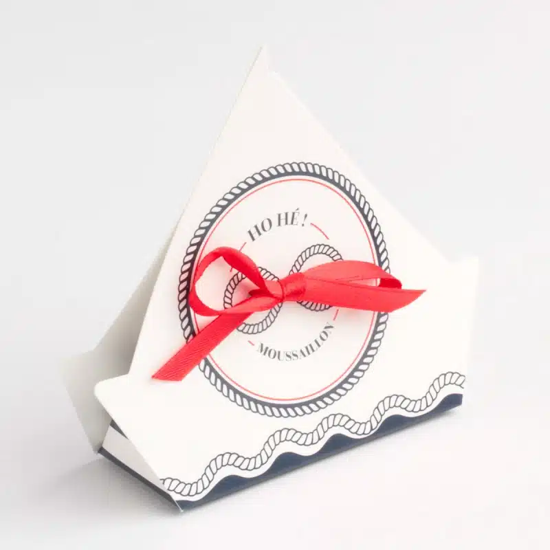 Contenant à dragées Bateau  » Ho Hé ! Mousaillon » – Lot de 10