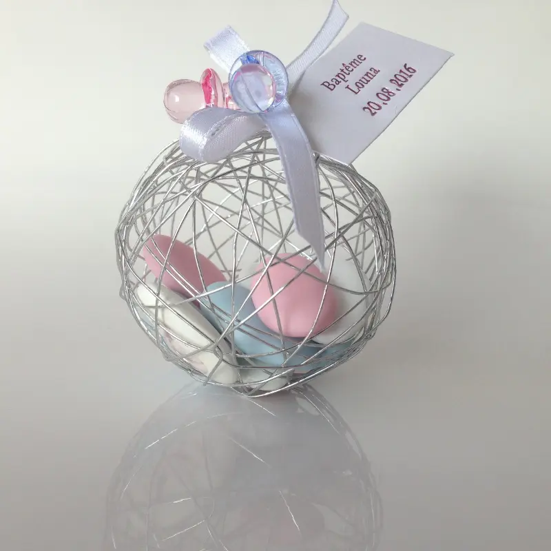 Contenant à dragées jumeaux – Boule métallique et tétines