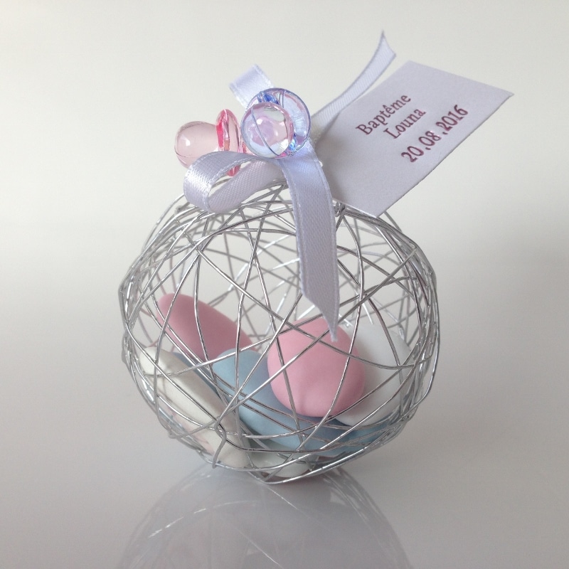 Contenant à dragées jumeaux – Boule métallique et tétines
