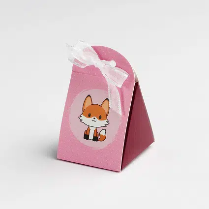 Contenant à dragées Renard Rose – Iris – Lot de 10
