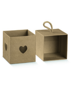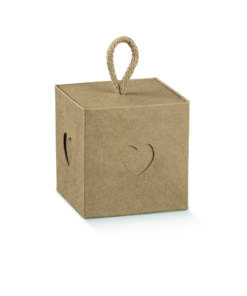 Contenant Dragées Kraft – Cube coeur – Cordelette – Lot de 10