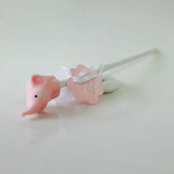 Ce joli crayon de papier avec un petit éléphant au bout, sera le cadeau idéal que vous offrirez aux enfants pour le baptême de votre enfant.Vous pouvez agrémenter ce crayon avec un sac organza non compris dans le prix, afin d’y insérer vos dragées, prévoir 25 à 30 gr par sac soit environ 8 à 10 dragées.