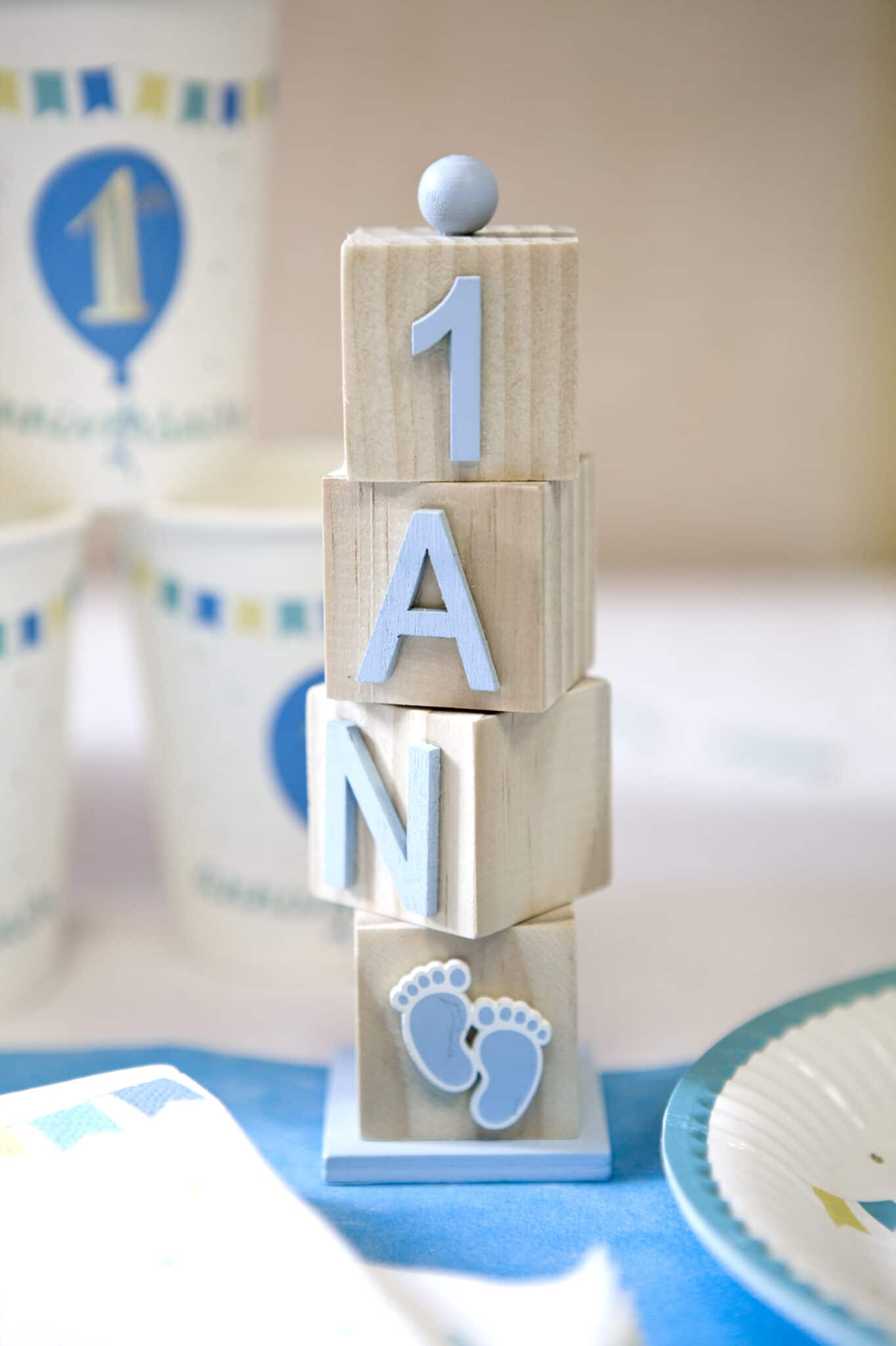 Décoration de Table « 1 AN » – Cube en bois – Bleu