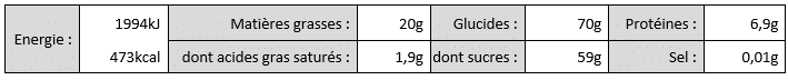 • Traces possibles : autres fruits à coque, soja, gluten, arachides, œuf, lait