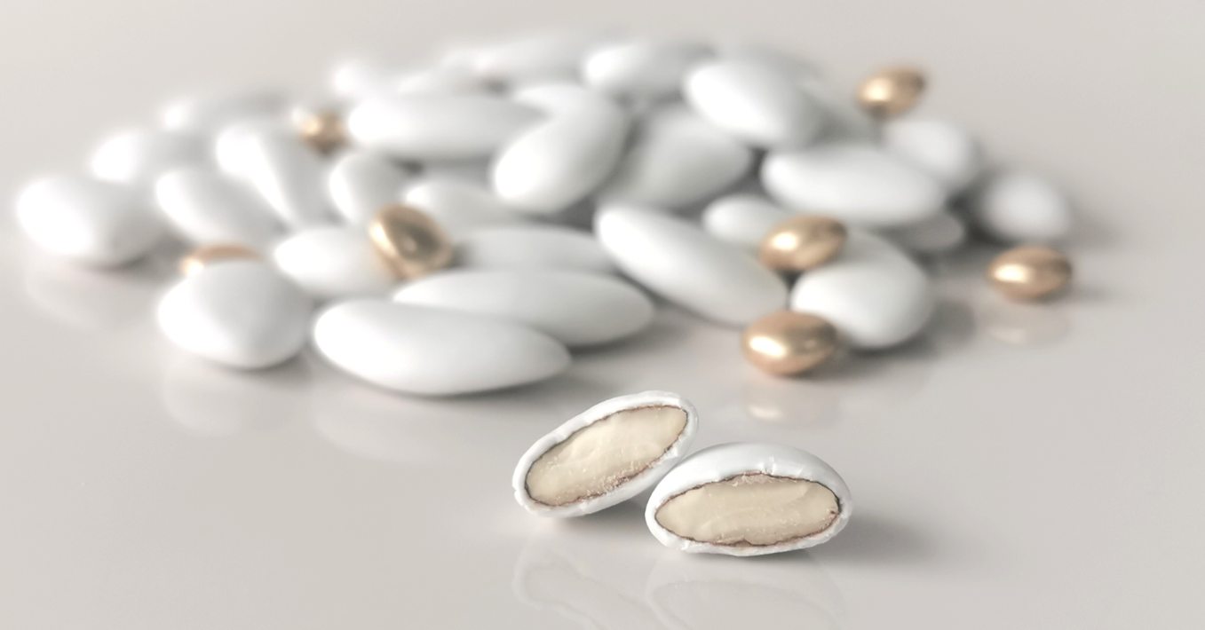 Une amande Avola exceptionnellement longue et plate, enrobée de la plus fine couche de sucre possible autour de l’amande. Cette dragée à 53% d’amande représente le haut de gamme de la dragée Avola. N’hésitez pas un instant, vous venez de découvrir LA dragée par excellence : finesse, délicatesse et arôme subtil de vanille sont réunis en une amande particulièrement appréciée des connaisseurs.