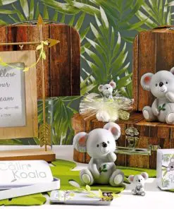 Dragées baptême Koala. Cette superbe figurine koala de 4 cm de hauteur en résine, sera un adorable souvenir à offrir à vos proches. Il pourra être collé à l’aide d’un pistolet à colle sur un bocal en verre afin d’offrir vos dragées avec élégance.