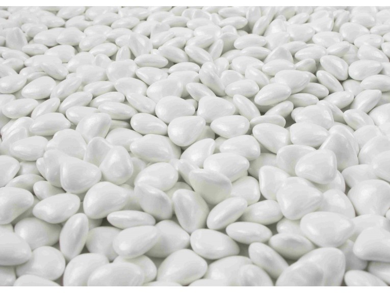 Dragées coeur blanc au chocolat de fabrication française. Sans amande, idéal pour les enfants ! Les dragées coeur blanc sont au chocolat 70% de cacao moulé et enrobé d’une très fine couche de sucre. Ces dragées coeur blanc au chocolat sont vendus par boite de 500 gr, soit environ 500 dragées coeur.