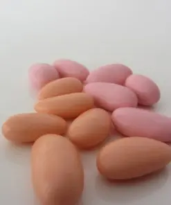 Dragées coeur pêche corail au chocolat de fabrication française. Sans amande, idéal pour les enfants ! Les dragées coeur pêche sont au chocolat 73% de cacao moulé et enrobé d’une très fine couche de sucre. Ces dragées coeur corail au chocolat sont vendus par boite de 500 gr, soit environ 500 dragées coeur.