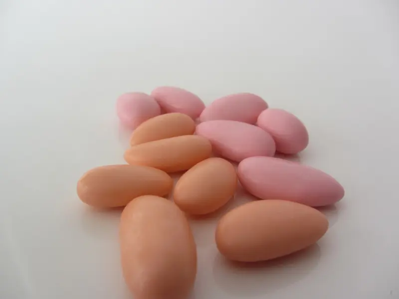 Dragées coeur pêche corail au chocolat de fabrication française. Sans amande, idéal pour les enfants ! Les dragées coeur pêche sont au chocolat 73% de cacao moulé et enrobé d’une très fine couche de sucre. Ces dragées coeur corail au chocolat sont vendus par boite de 500 gr, soit environ 500 dragées coeur.