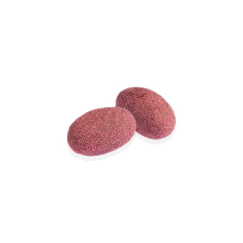 Coeur fruitée à l’arôme naturel de framboise & Gianduja. Finition poudre naturelle de framboise.