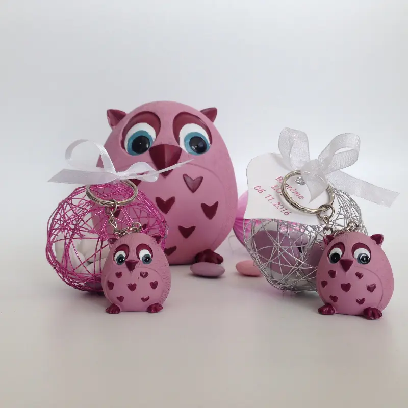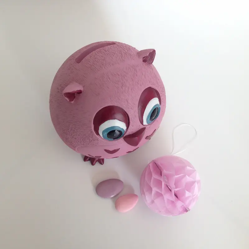 Superbe tirelire hibou. Elle pourra servir comme décoration de table le jour du baptême ou de la communion et sera ensuite gardé par votre enfant.